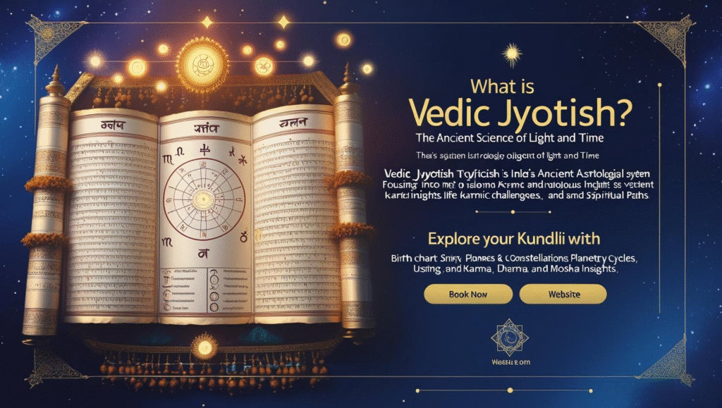 Vedic Astrology (Jyotish Shastra) is not just about predicting your future — it’s about understanding your soul’s journey. Rooted in the ancient scriptures of India, Vedic astrology uses your date, time, and place of birth to create a powerful map of your life — known as the Kundli.
